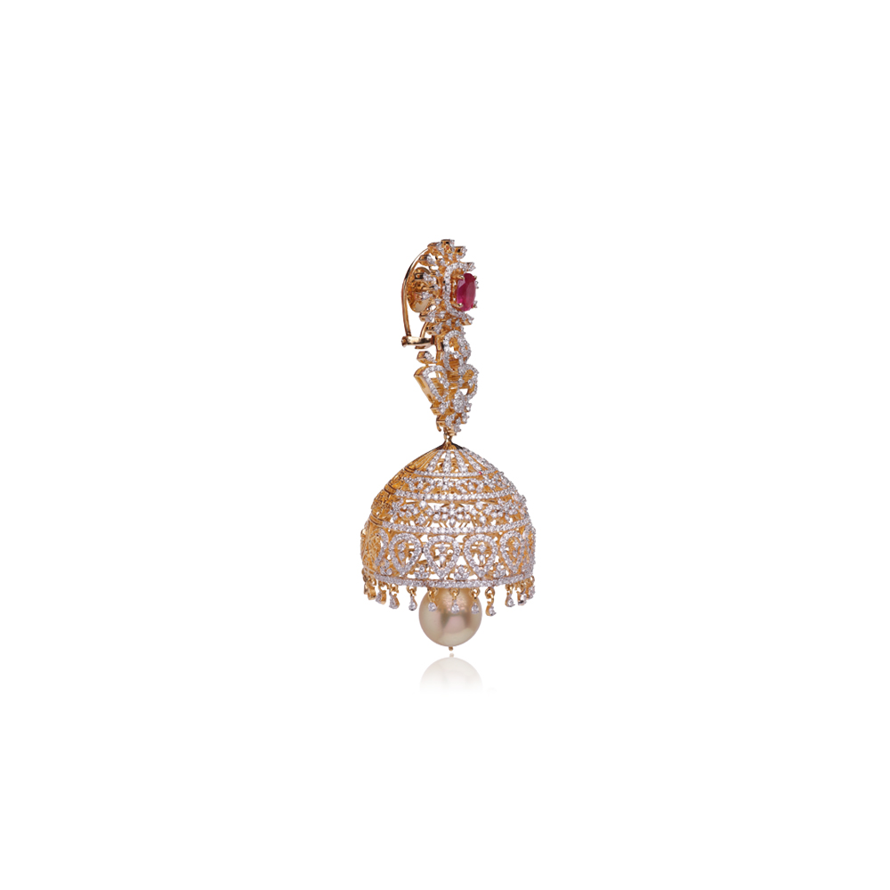 Elegant Rubies & Diamond Jhumkas