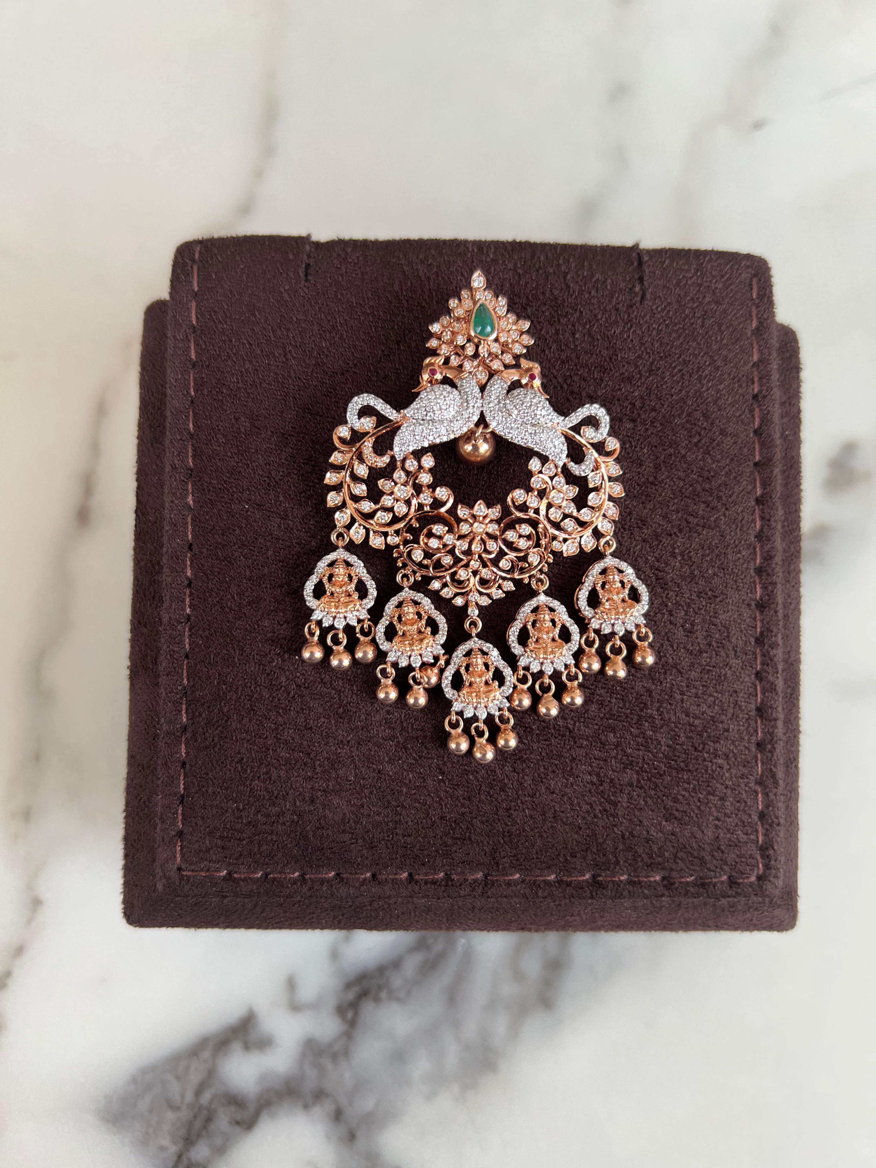 Peacock Motif Diamond Pendant with Zambian Emerald
